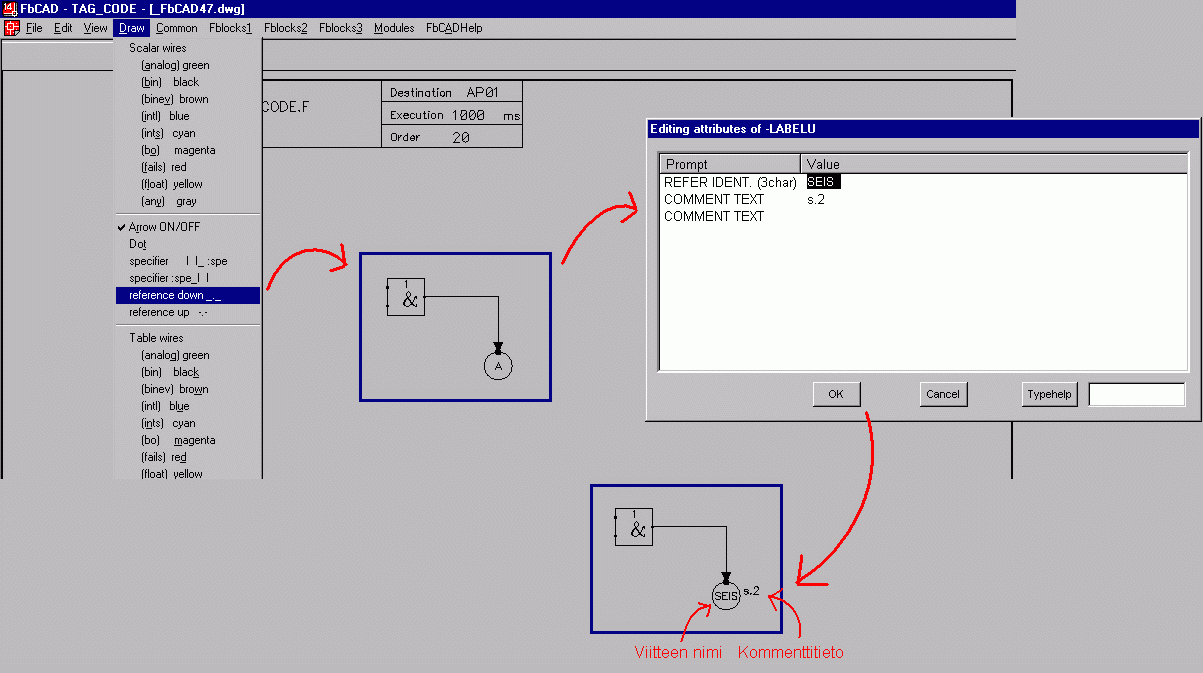 - Toisistaan kaukana olevien kohteiden liittäminen toisiinsa viittauspallukan avulla