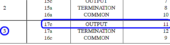CR Manuals, Collection 2010 Fi, Sähkömekaniikka: LiitynnätTässä esimerkissä käytetään AOU4-kortin kanavaa 3, joten taulukosta etsitään kanava 3 ja sitä vastaava OUTPUT-kytkentänastan numero, joka näyttäisi olevan 11: