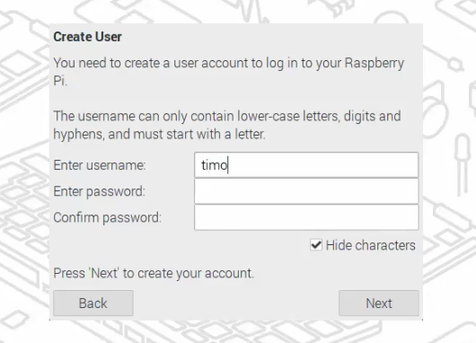 - Luo käyttäjätunnus ja määritä sille salasana. Klikkaa