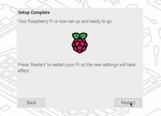 - Asentaminen on päättynyt ja Raspberry Pi Desktop voidaan käynnistää. Klikkaa