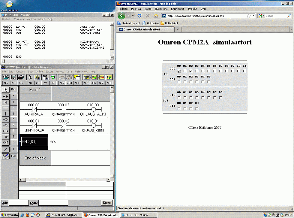 timohei.net / Opintojaksot / Ohjauslogiikoiden perusteet / SYSWIN virtuaalikoneessa /