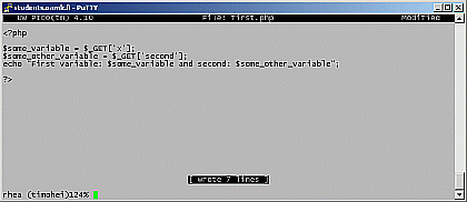 - Open a web browser and type in address http://www.students.oamk.fi/~your_username/first.php?x=First&second=The%20Other